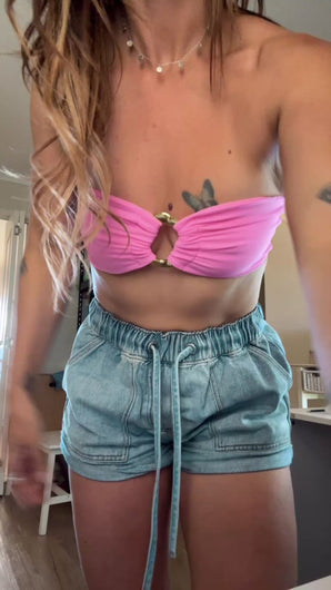 Cotton Candy Tropez Strapless Gold Buckle Top